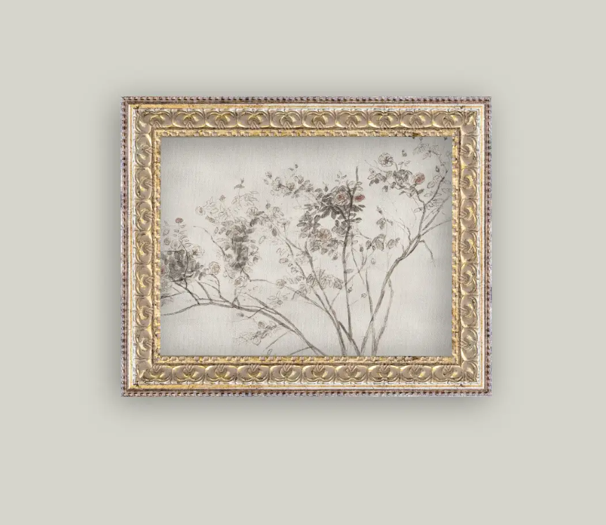 Rose Bush framed antique art is printed on quality canvas, giving it a lasting finish, then placed into our handcrafted Fancy Gold frame. This is an authentic reproduction of the original artwork. Features: Artwork Material: Printed on premium canvas fabric for a lasting, textured finish. Measurement reflects the outside dimensions of the frame. Frame Details: Handcrafted ornate frame adds classic charm. Hardware Included: Comes with a paper backing and hanging hardware for easy installation. Glass-Free Design: Keeps the artwork lightweight and true to its original texture. Made in the USA: Proudly crafted with quality and care. Care Instructions: Keep canvas dry to maintain its quality. If smudged or dirty, gently wipe with a dry, soft cloth.